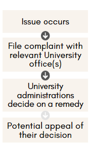 Our data shows that at least 1 in 5 workers experience harassment, discrimination, and/or bullying in their workplace as researchers and teachers. When an issue comes up, definitions of what constitute harassment are defined by the University and subject to change whenever they’d like. The different processes for handling different issues make things confusing and burdensome for workers: especially since student workers are responsible for their own legal feels.
