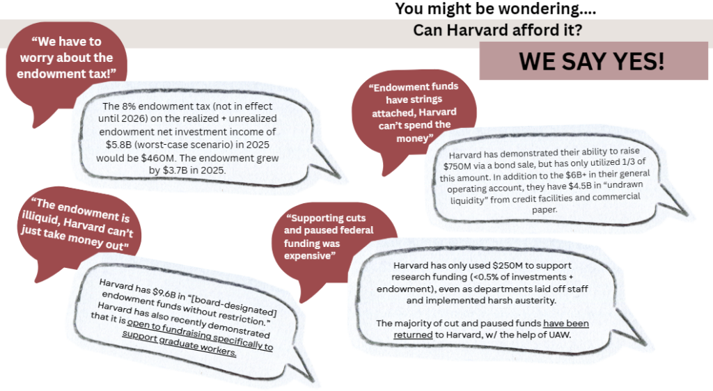 In 2025 alone, HGSU administered $2.75 million in benefit funds the offset costs for childcare, dental, dependent insurance, healthcare, non-citizen expenses, and emergency for student workers. The demand for benefits ($3.3 million) FAR exceeded the amount Harvard was willing to provide.